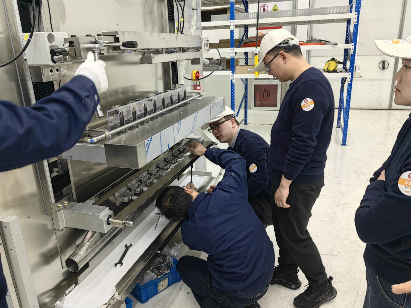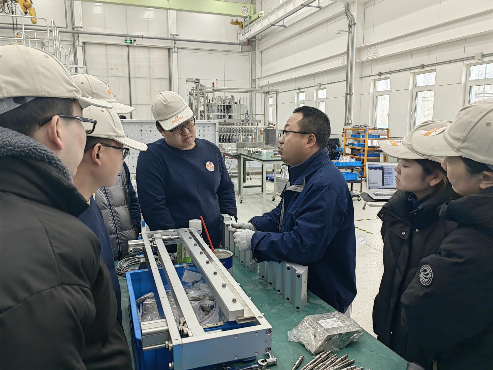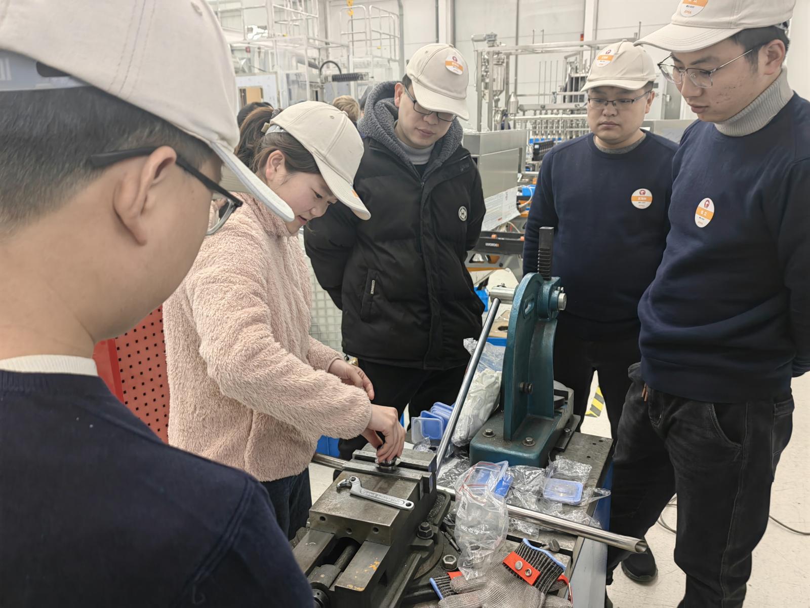 在学习期间,全体参培人员积极参与其中,认真聆听培训师傅的教导,踊跃参与设备操作,主动请教培训师傅。厂家技术人员还对生产操作员在工作中遇到的疑难问题进行解答指导。看着自己亲自操作生产出的合格产品,大家都兴奋不已。