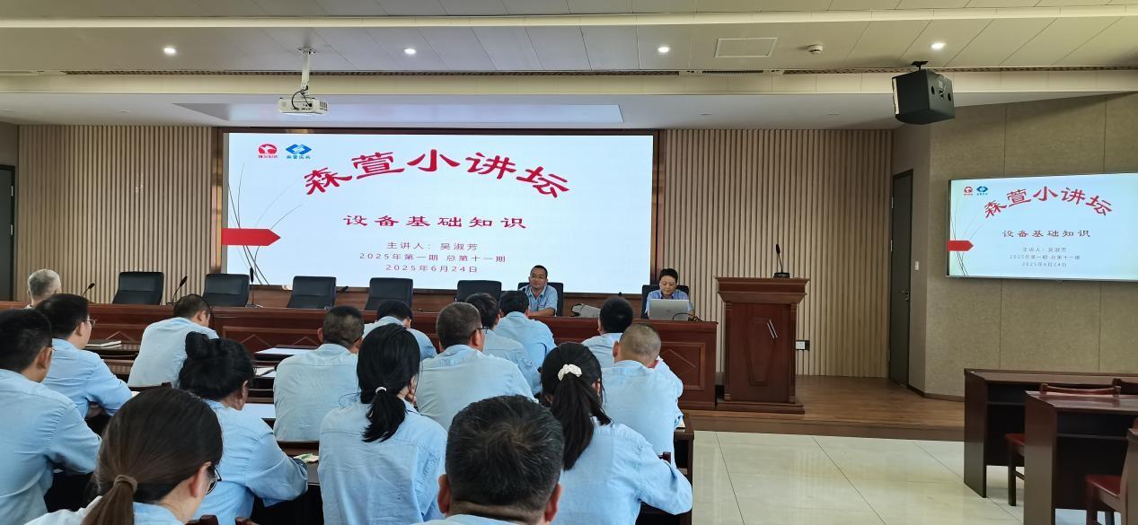 为进一步提升员工对设备的理论认知与实操能力,保障生产设备高效稳定运行,公司于2025年6月24日组织开展了2025年度第一期,总第十一期“森萱小讲坛--设备基础知识”专题培训。本次培训由工程处邀请专业设备厂家高级工程师吴淑芳担任主讲,公司相关部门岗位员工参与学习。 理…