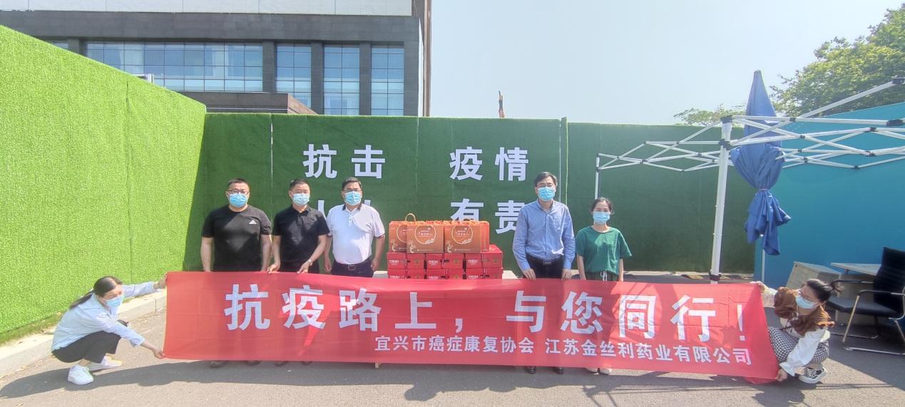 5月6日,江苏金丝利药业股份有限公司总经理李云华、副总经理蔡辉等主要领导携手宜兴市癌症康复协会共同慰问了宜兴市在环科园亚朵酒店、丁山紫砂宾馆、丁山国际大酒店三个隔离点的疫情防控一线医护工作者,向他们赠送了金丝利牌灵芝破壁孢子粉胶囊、水果礼盒等相关慰问品,感谢…
