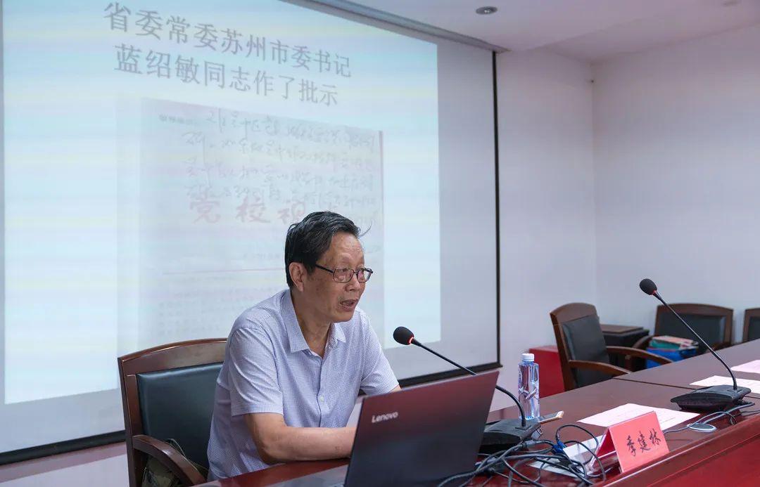 会前,中共南通市委党校季建林教授为参会人员作了《学习苏州经验•加快南通发展——南通与苏州经济发展差距的理念因素分析》的专题党课讲座。